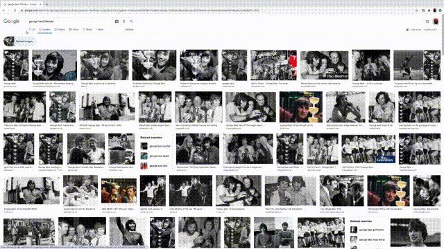adapted as a visual podcast by using text in subtitle form and the image results from google search: “George Best” “George Best Beatles” “George Best Lifestyle”